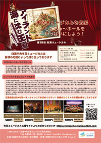 両日ともに14:00開演 計2回公演 ※開場は30分前 しこちゅ〜ホール 〜四国中央市市民文化ホール〜 チケット前売り 1,500円 / 当日券 1,800円 [全席自由]